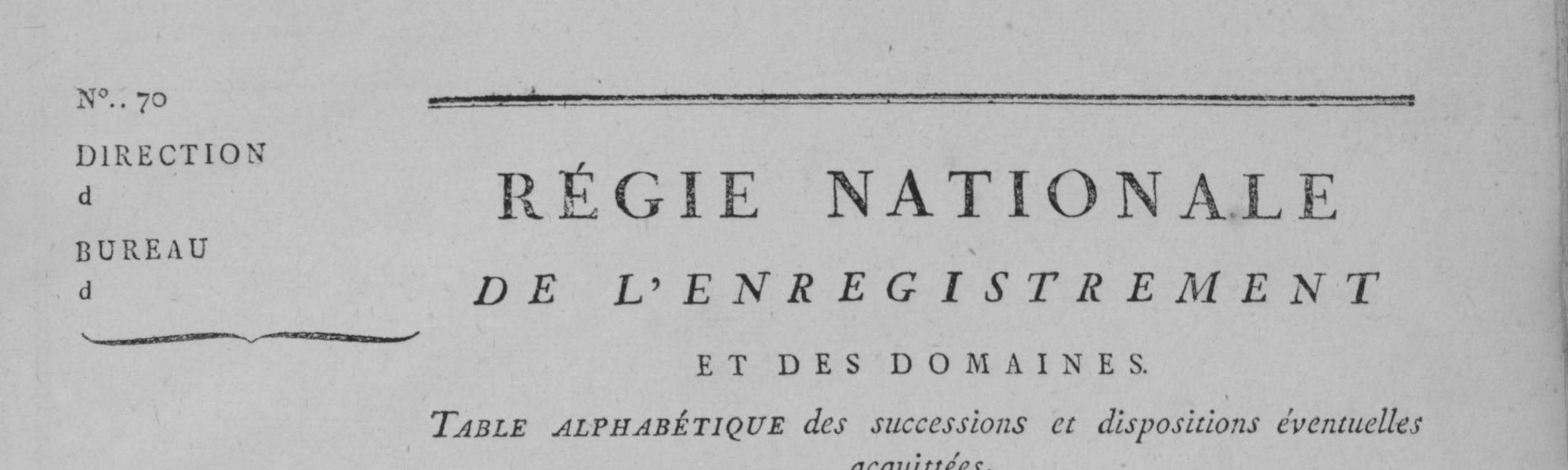 - tables des décès et des successions (1791-vers 1953) qui permettent aussi de retrouver un défunt, selon le lieu de sa résidence habituelle ;