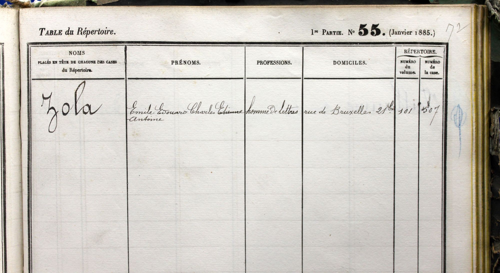 Indiquer dans le formulaire d'interrogation le numéro de volume et le numéro de folio trouvés à l'étape 1. Retrouver les nom et prénoms du propriétaire du bien étudié dans la table alphabétique du répertoire des formalités hypothécaires, noter les références de volume (chiffres et lettre, le cas échéant) et de case indiquées dans les colonnes de droite de la page. Ces informations permettent de poursuivre la recherche en consultant le répertoire des formalités hypothécaires correspondant (étape 3 de la recherche).