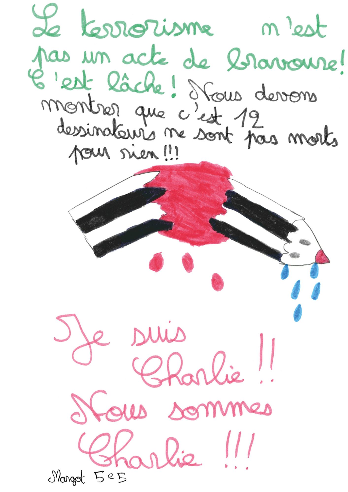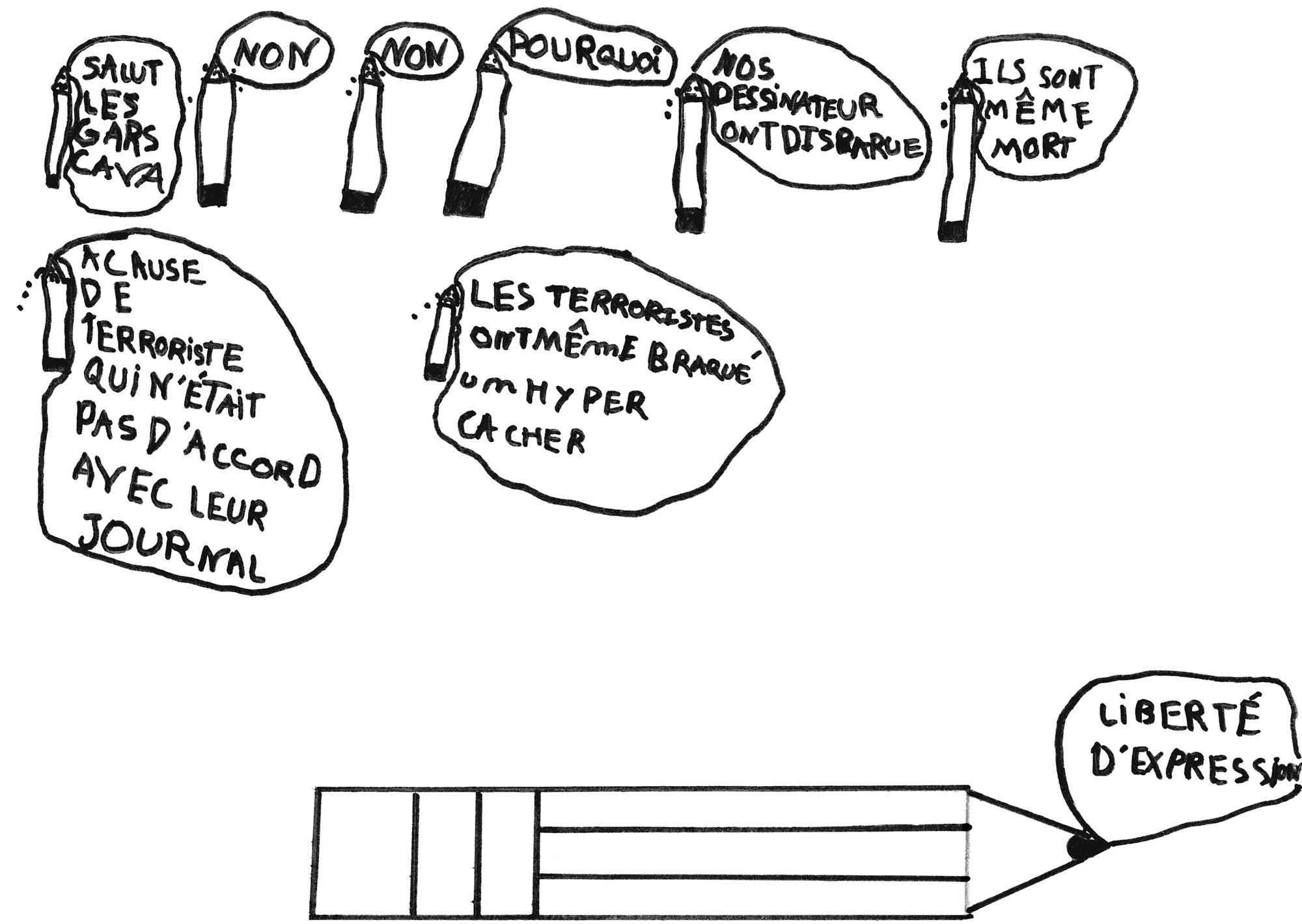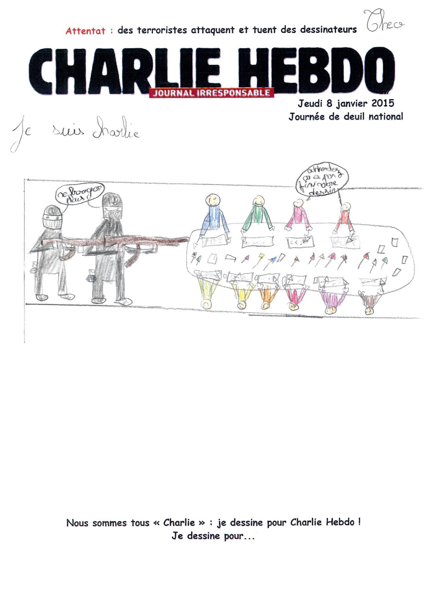 7 janvier 2015 : dessins reçus par Charlie hebdo après l’attentat
