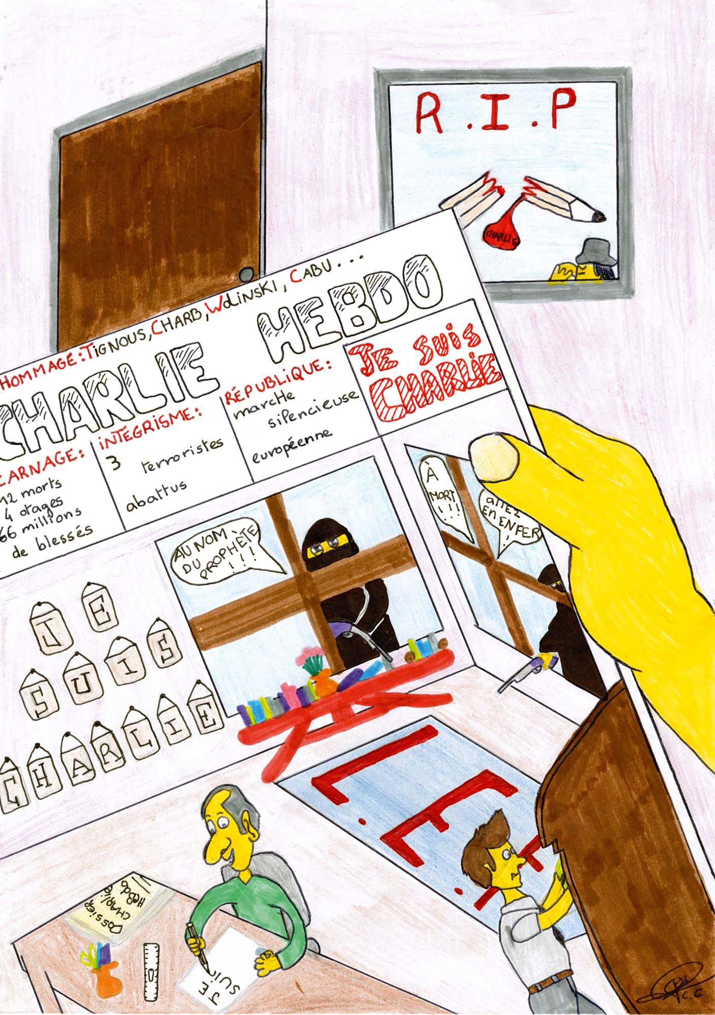 7 janvier 2015 : dessins reçus par Charlie hebdo après l’attentat