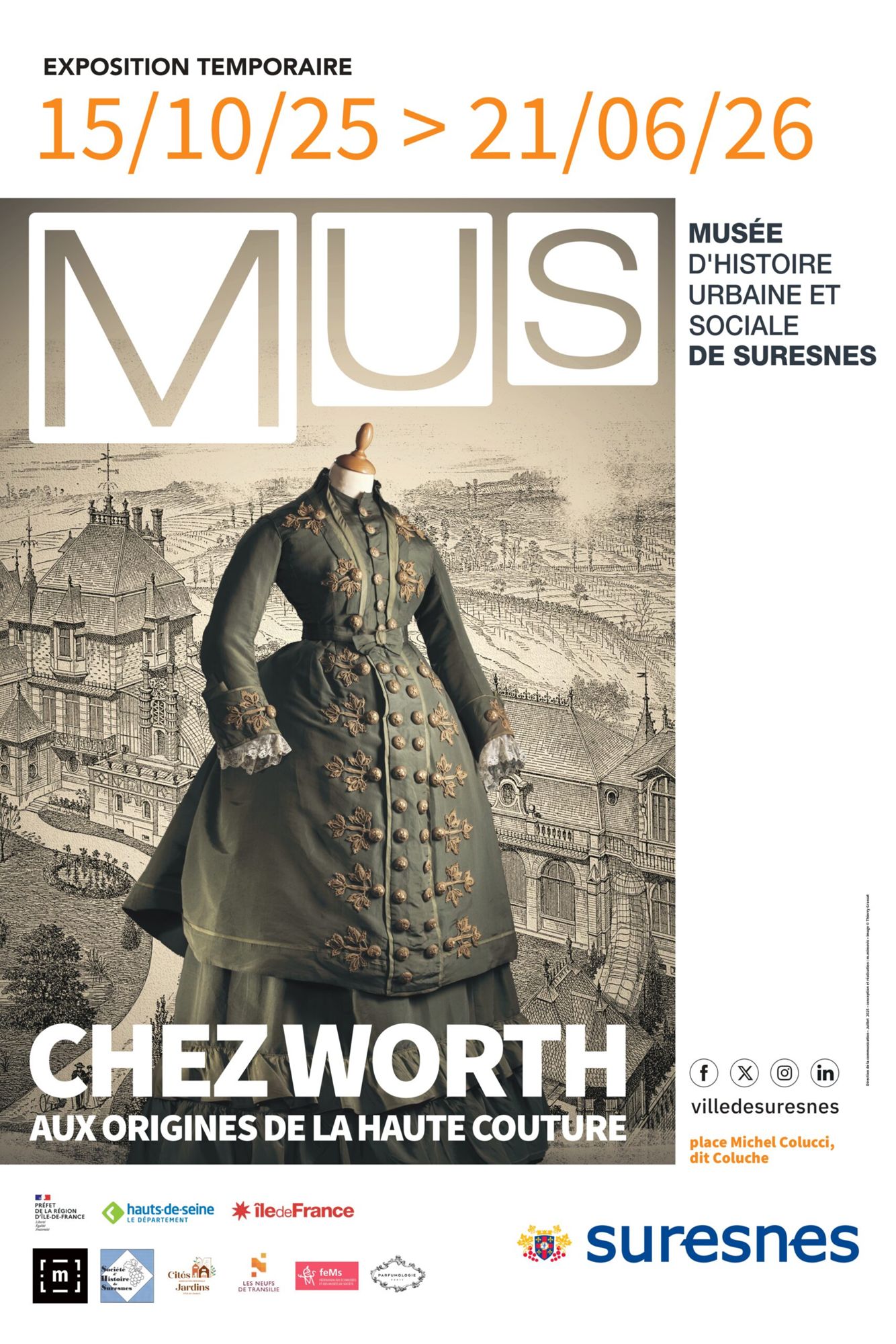 À l’occasion du bicentenaire de la naissance du couturier, le Musée d'histoire Urbaine et Sociale de Suresnes (MUS) présente une exposition temporaire consacrée à Charles Frederick Worth, le père de la haute couture, qui avait choisi Suresnes pour y construire sa résidence secondaire.