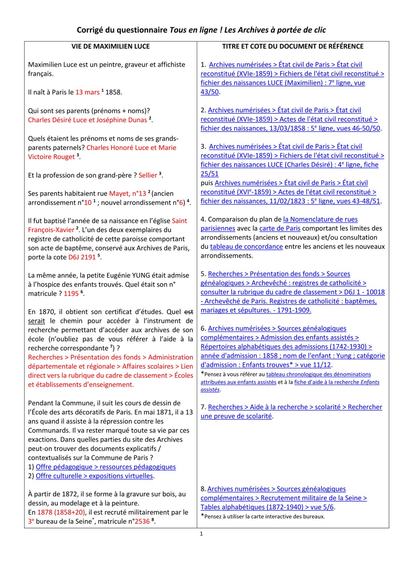 N’hésitez pas à nous envoyer vos commentaires et souhaits relatifs à ces cours en écrivant à cette adresse : DAC-Archives-valorisation@paris.fr