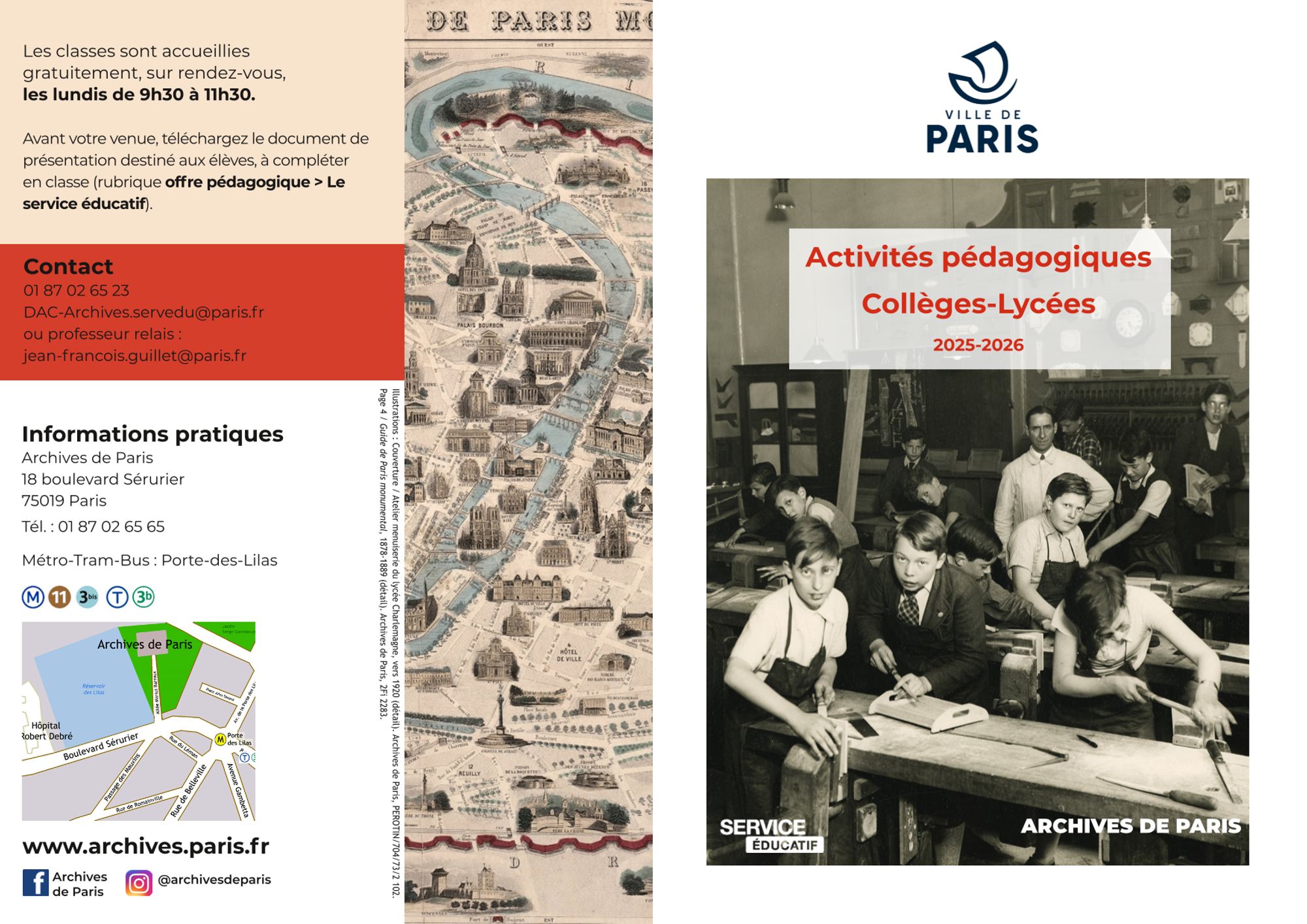 Sur demande, le service éducatif peut concevoir une offre pédagogique personnalisée autour de votre établissement : le quartier du collège / lycée a-t-il toujours été dans Paris ? (lecture de plans, architecture, patrimoine).