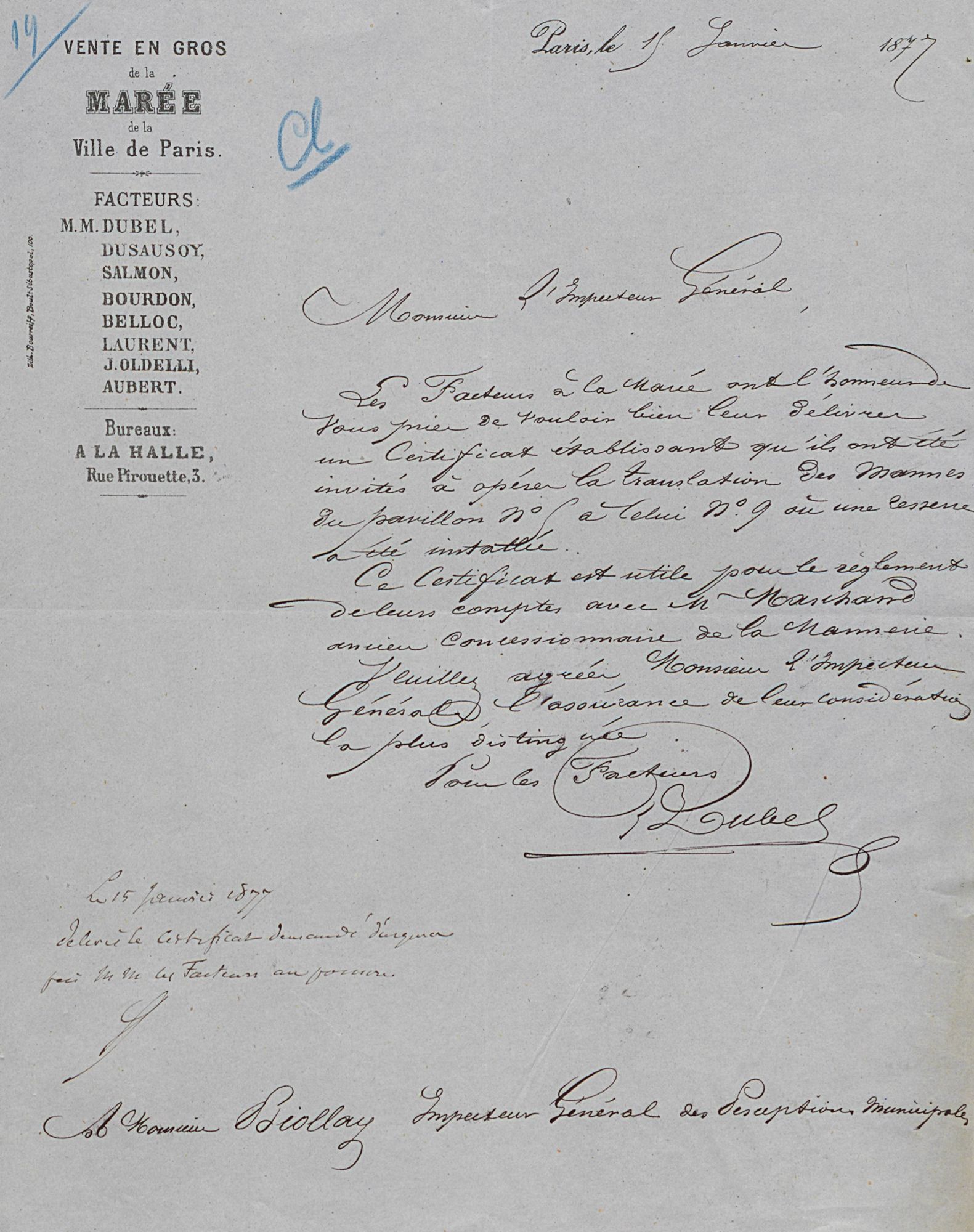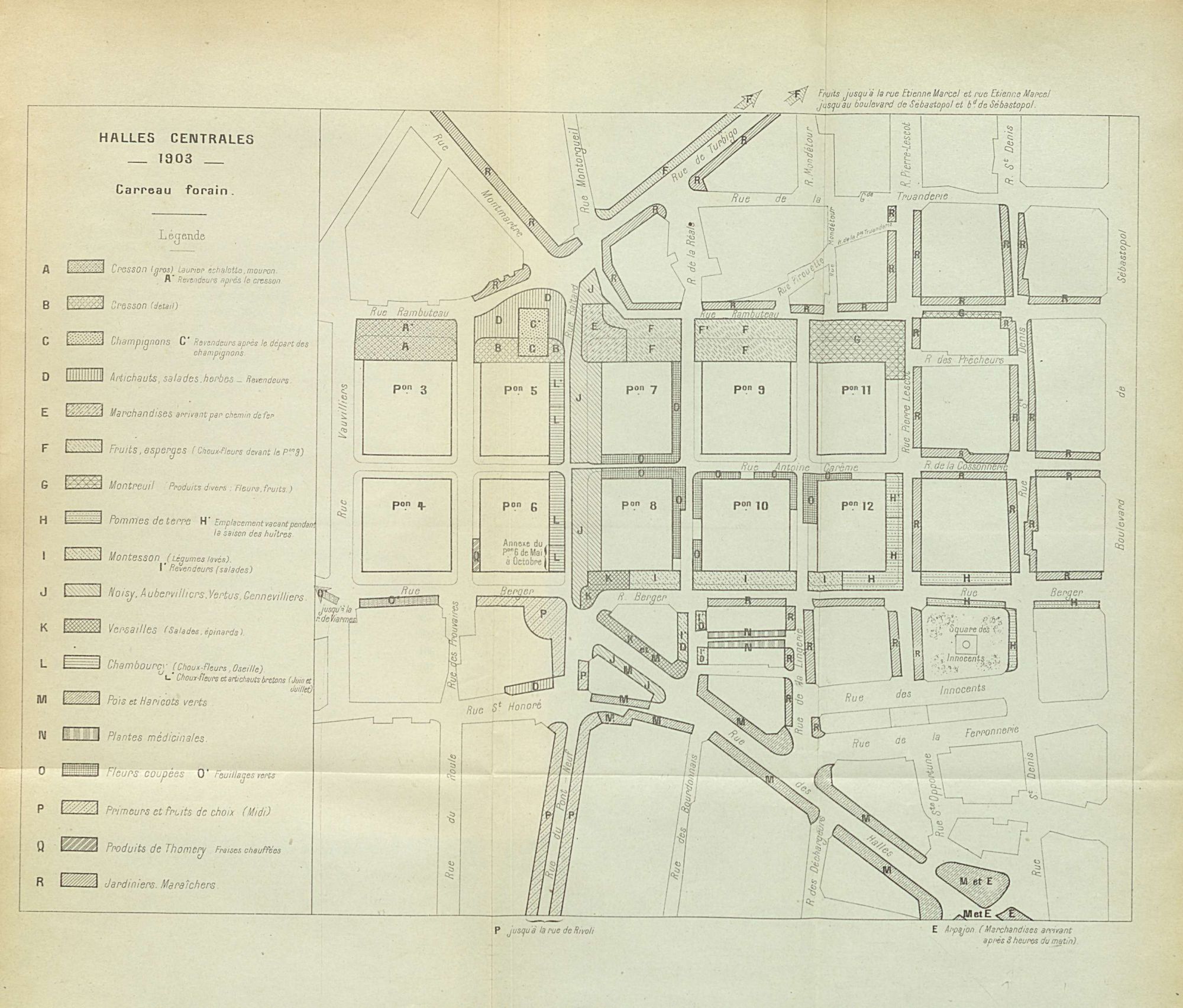 - Les halles centrales de Paris autrefois et aujourd’hui, Jules Vigneau, inspecteur principal chargé de la direction des halles centrales, 1903. Archives de Paris, 21Eb 37.