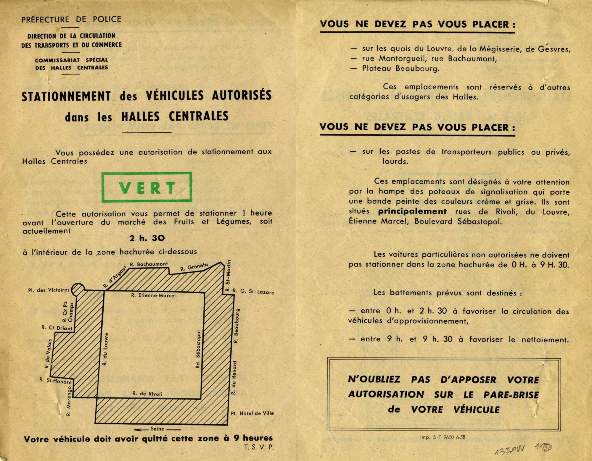 Une journée aux halles débute avec l’arrivée des denrées ; l’accès est autorisé dans le périmètre de 21h à minuit (horaires d’été). Les voitures et camions d’approvisionnement attendent en file l’autorisation d’y pénétrer. Les stocks sont déchargés par les « forts » qui sont seuls habilités à le faire.