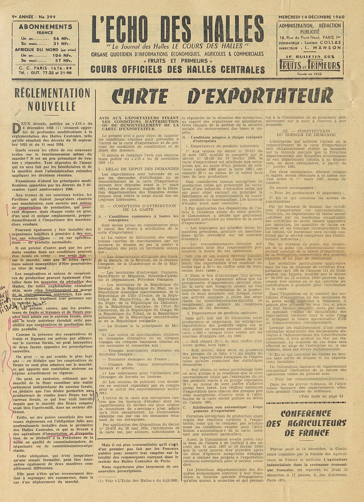 - Le mécanisme de l’approvisionnement de Paris, les halles centrales, René Clozier, in L’information géographique vol.2, n°2, 1937.