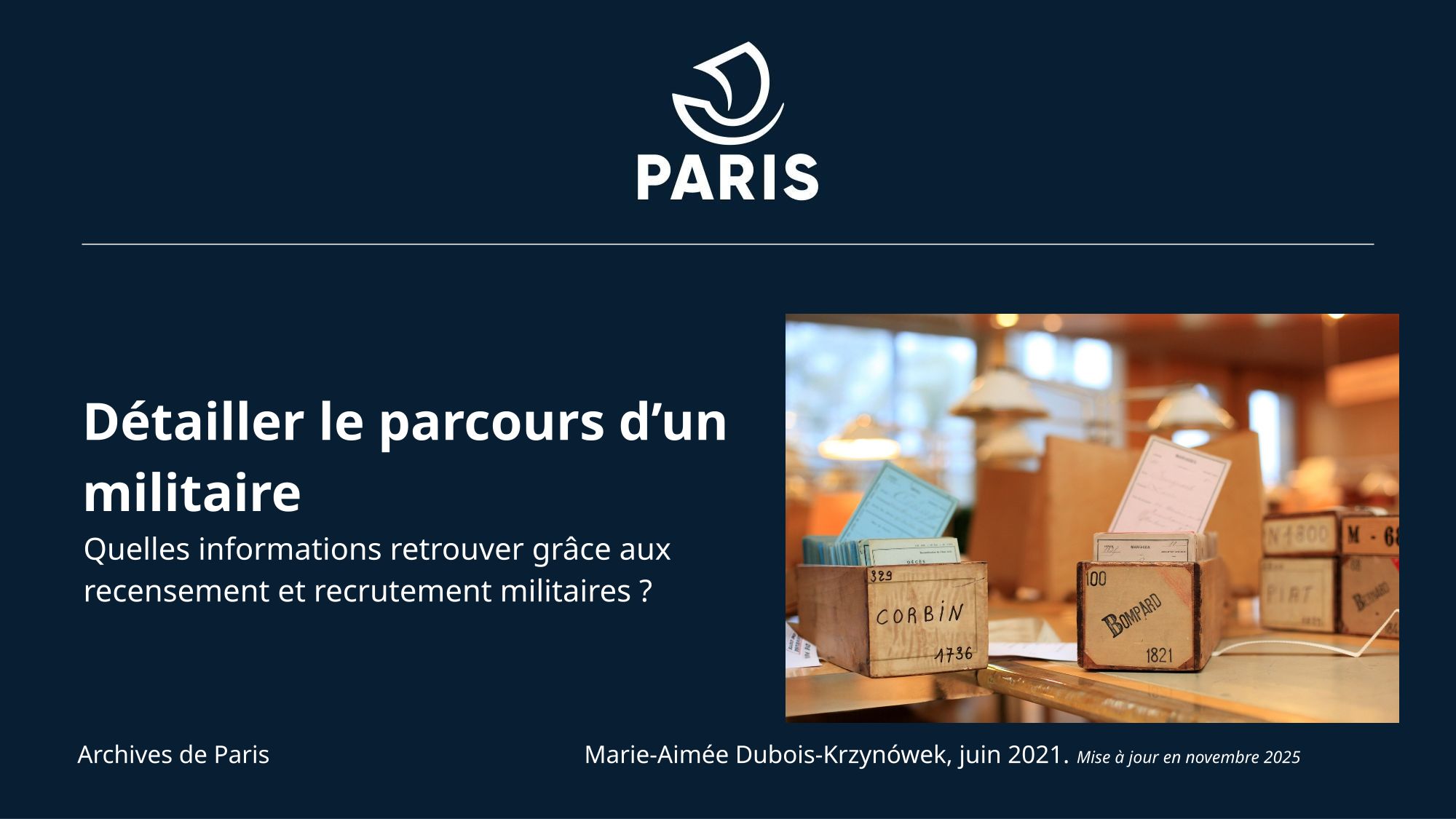 L'oeil, prospectus détective, détail, collection Legrand (D17Z 2). Affaires militaires et conflits armés Détailler le parcours d'un militaire : quelles informations retrouver grâce aux recensement et recrutement militaires ? (18.1 Mo) Survivre à la guerre (6.7 Mo) Mourir à la guerre (11.3 Mo) L'école en période de conflits (12.1 Mo) Faire justice pendant et après-guerre : comment suivre un justiciable/condamné traduit devant les juridictions parisiennes ? (12.6 Mo) Faire une recherche dans le fonds des dommages de guerre (8.8 Mo) Spoliations et restitutions de biens juifs (23.5 Mo)