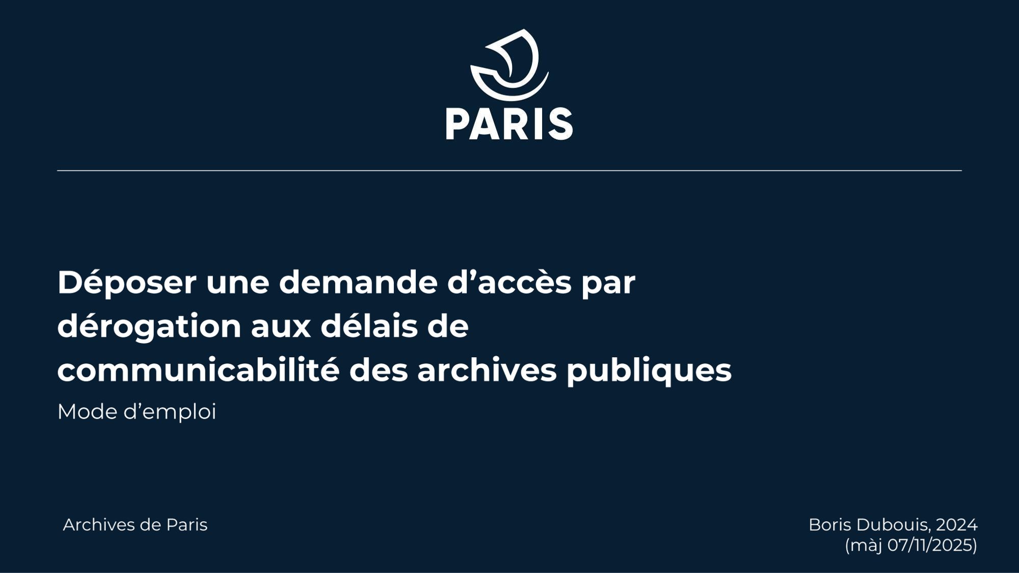 L'oeil, prospectus détective, détail, collection Legrand. Archives de Paris, D17Z 2. Premiers pas et bibliothèque Premiers pas aux Archives de Paris (5.2 Mo) Nouveau site internet des Archives de Paris : mode d'emploi (5.1 Mo) Rechercher une publication dans la bibliothèque des Archives de Paris (4.3 Mo) Déposer une demande d'accès par dérogation aux délais de communicabilité des archives publiques, mode d'emploi (1.7 Mo) Les arrondissements de Paris avant et après 1860 (2.9 Mo)